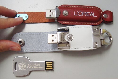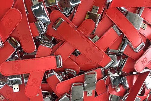 Leather USB drives in custom coloring are what they want.No matter Energy green, elegant gray, or lovely pink. We can do any colors in the Pantone chart.