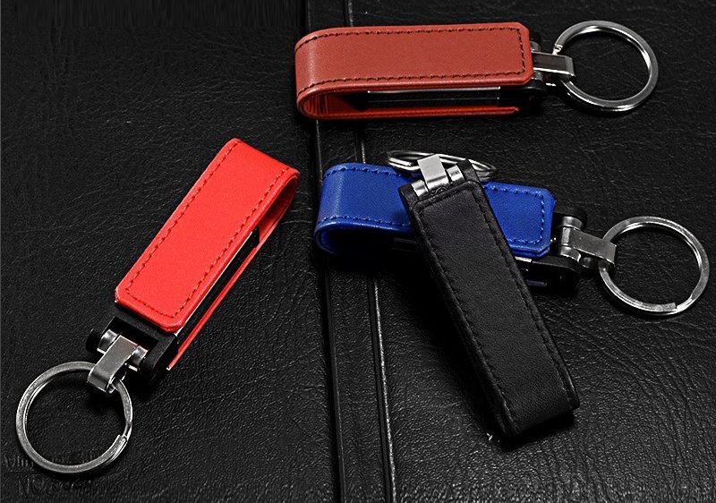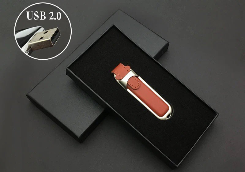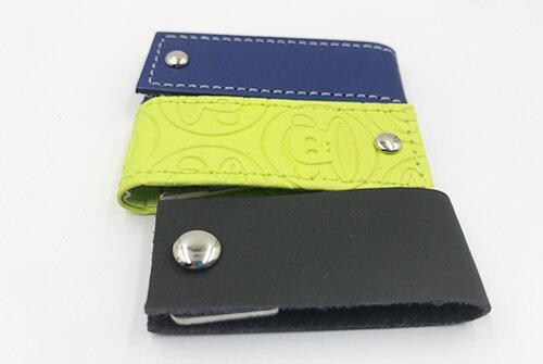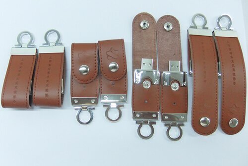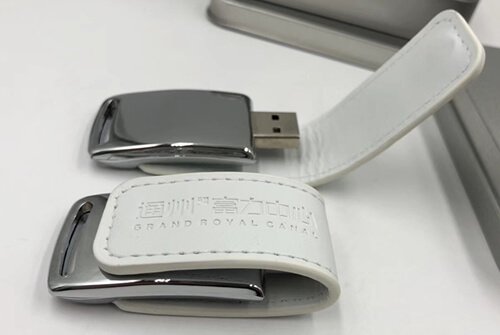 Leather USB drives in various colors, Such as Blue, Black, White, Brown, Green, and Custom coloring. People love leather products because they are beautiful and durable for use. All our Leather USB sticks are in genuine leather.You can have your logo printed or hot stamping on leather.