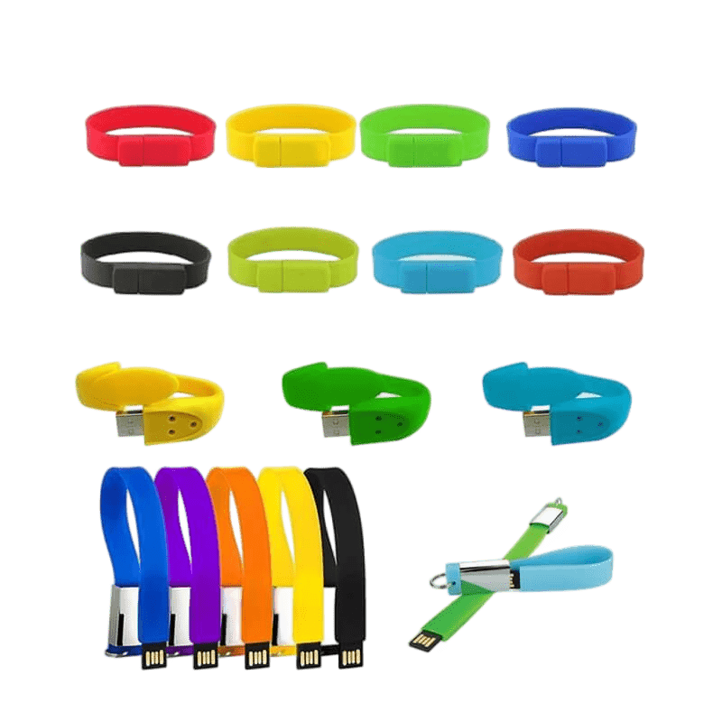 Stylish and functional, our wristband USB drives—also called USB wristbands or flash drive bracelets—are made from PVC or silicone. Popular styles include flat, buckle, and watch-type bands. Custom logo printing available. As a reliable USB manufacturer, we offer wholesale and OEM/ODM services for branded giveaways and promotional use.