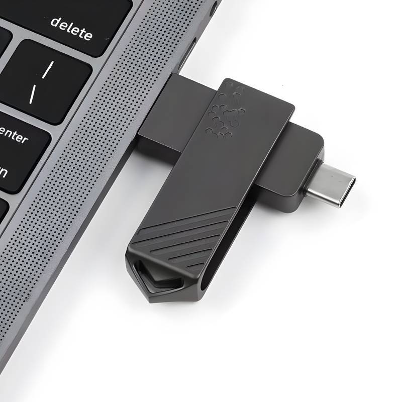 Contrairement aux clés USB traditionnelles en métal lisse, ce modèle présente des motifs 3D hexagonaux innovants sur le boîtier en alliage de zinc, améliorant la prise en main par 30%. Le trou de serrure triangulaire permet de l'attacher directement à des porte-clés ou à des sacs, et elle passe un test de chute de 1,5 m pour répondre aux problèmes de perte courants. Le couvercle rotatif à fermeture magnétique révèle les ports USB 3.0 et Type-C lorsqu'il est tordu, favorisant l'utilisation plug-and-play sur les ordinateurs Windows/macOS et les téléphones Android/iOS.