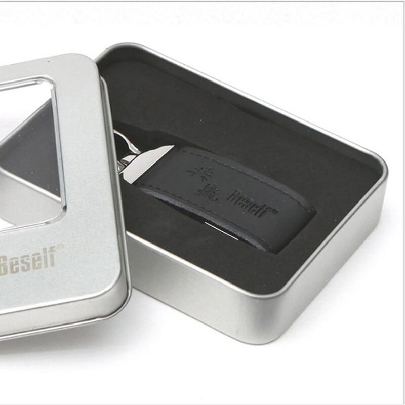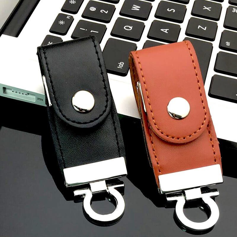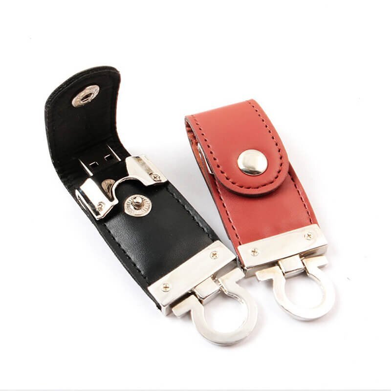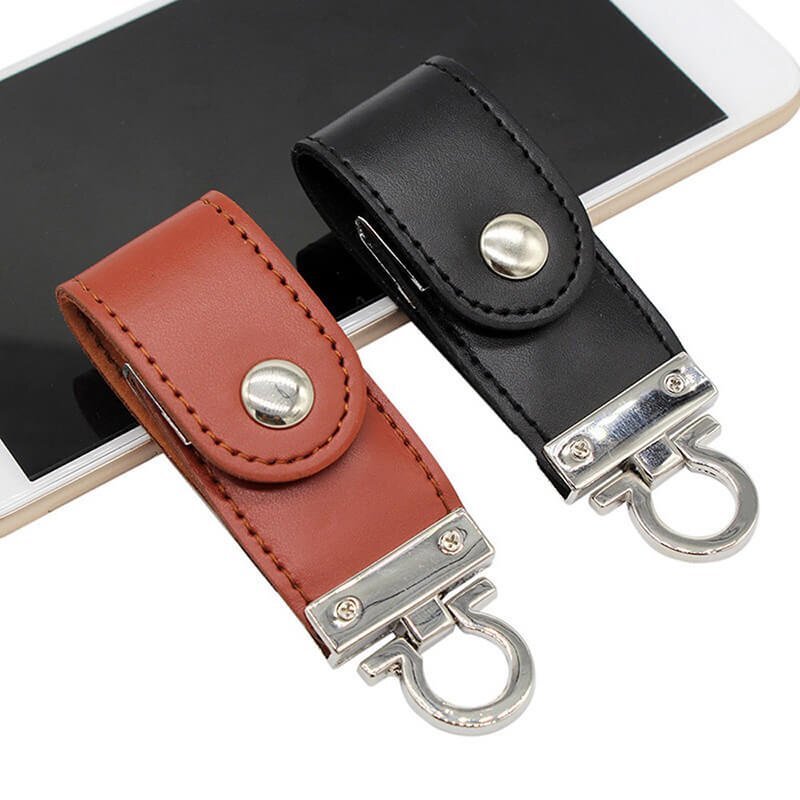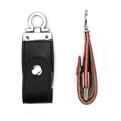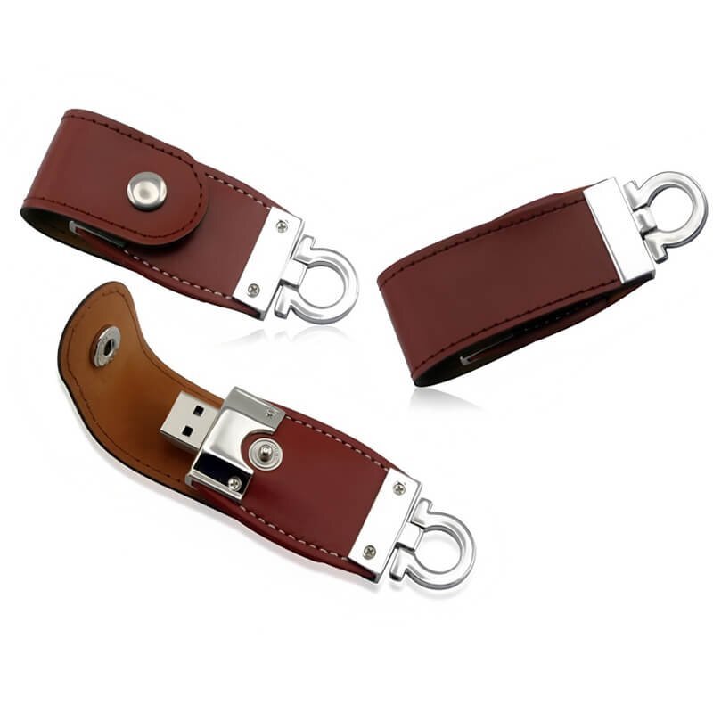 The flip cover metal buckle leather USB flash drive adopts a closed buckle design, with a leather shell and a high-grade metal snap button. It can be used by simply flipping it open. It abandons the traditional magnetic attraction and uses a metal hidden buckle instead. Combined with a sturdy metal ring and exquisite leather, it has a unique style and is one of the most popular leather case USB flash drive styles in recent years.