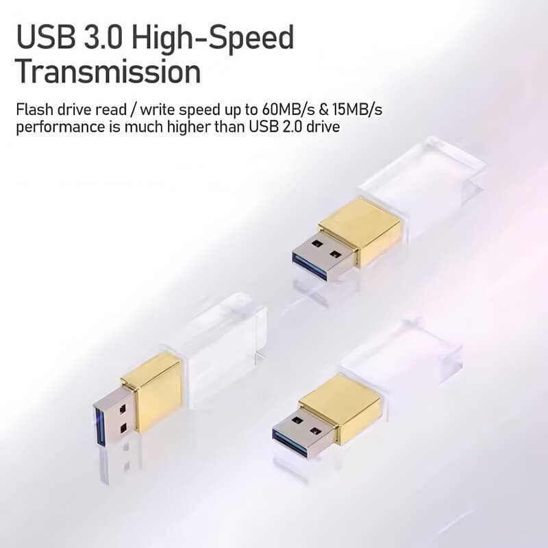 High-Efficiency Transmission of USB 3.0: The read speed reaches up to 60MB/s, and the write speed is 15MB/s. In practical use, transferring a 1GB video file takes only about 17 seconds with USB 3.0, while it takes nearly 3 minutes with USB 2.0. The efficiency is improved several times, significantly reducing waiting time.