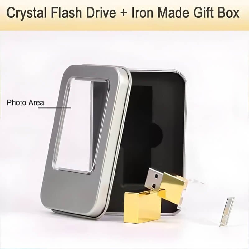 An iron gift box is used, featuring sturdy material and strong pressure resistance, which effectively protects the USB flash drive from collisions and scratches. The box design is simple and elegant, with the silver metallic texture echoing the golden color of the USB flash drive, enhancing the overall grade.