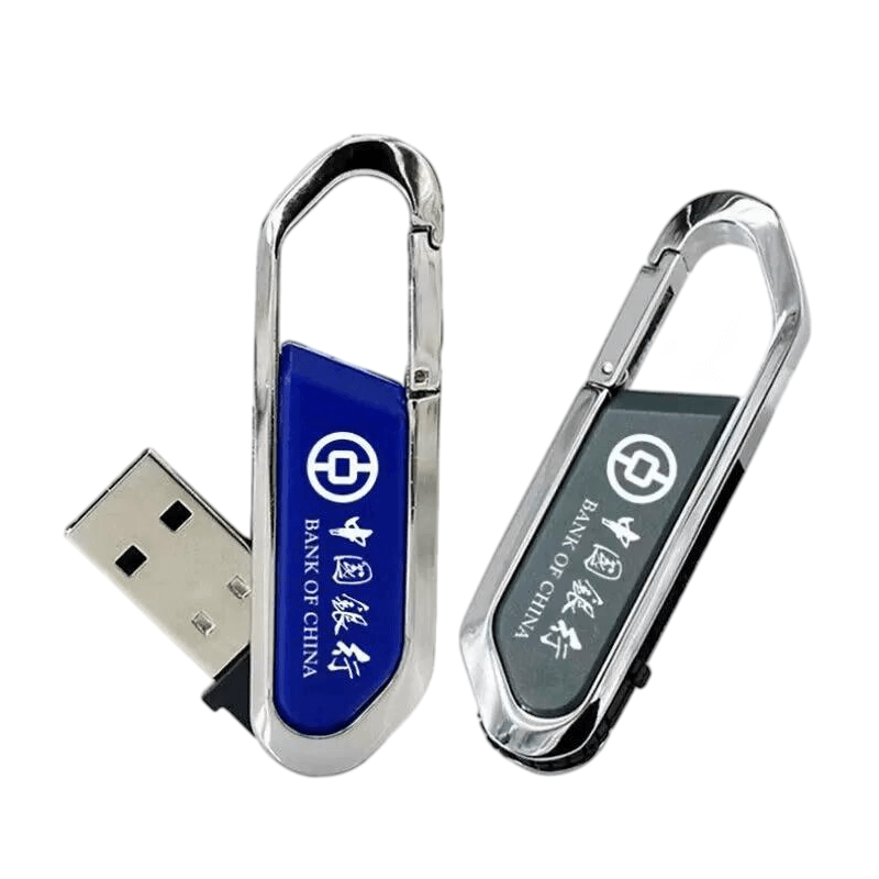 The metal carabiner USB flash drive supports logo printing. Common printing processes include laser engraving, screen printing, and electrophoretic printing. The costs of each printing process vary.
