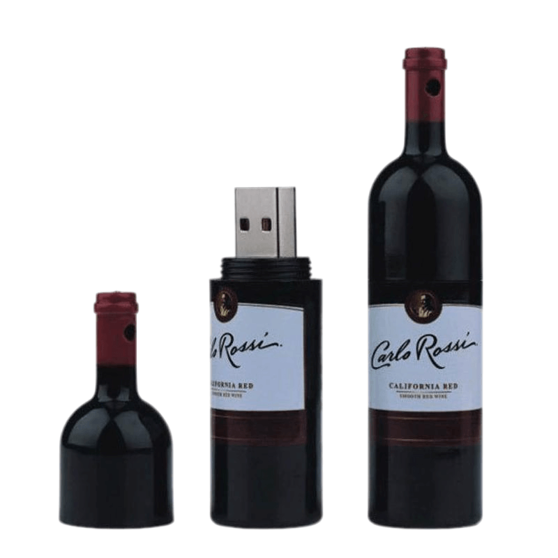 Red wine / wine industry: The USB flash drive imitating the shape of a wine bottle can be used as a gift for winery tasting parties and new product promotions, with the brand logo engraved to convey a high-end texture.